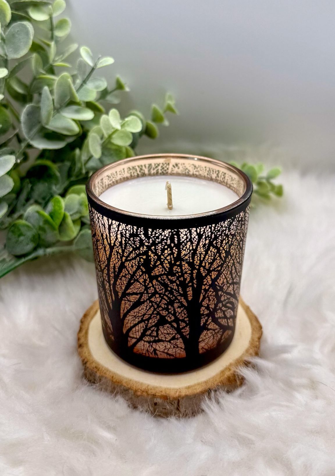 J’ai imaginé cette bougie comme une balade apaisante au cœur de la forêt, là où la lumière se faufile entre les arbres et où le calme règne.