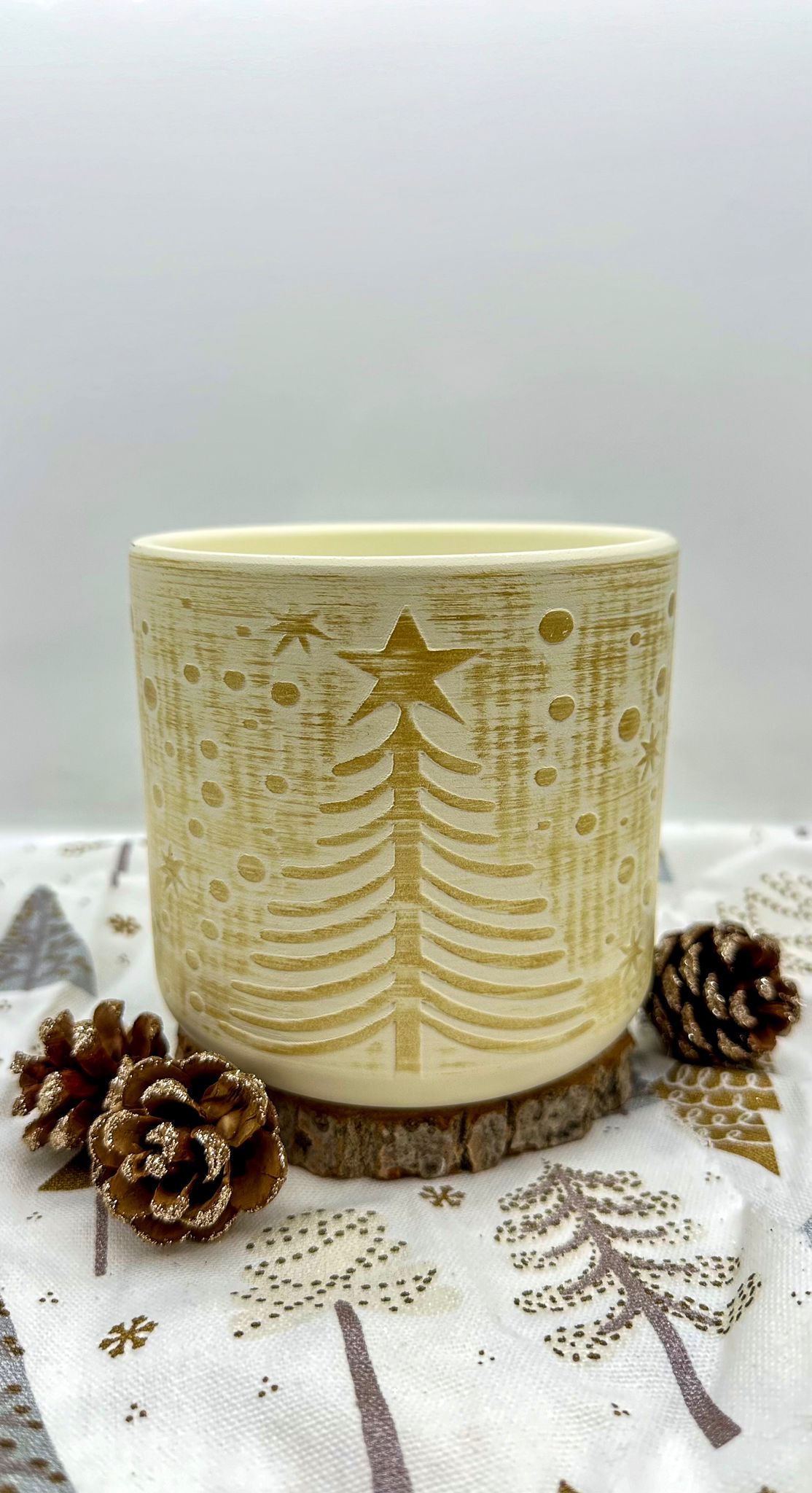 Coulée à la main dans mon atelier en Moselle, cette bougie de saison est présentée dans un pot en verre décoré d’un sapin doré, de délicats motifs boisés et de touches lumineuses rappelant la nature hivernale. Une fois allumée, elle diffuse une lumière douce et chaleureuse, idéale pour créer une ambiance cocooning, naturelle et festive dans votre intérieur.